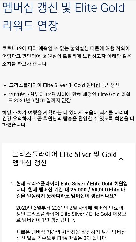 - 2020년 7월부터 12월 중에 만료예정인 Elite Gold 리워드 유효기간도 2021년 말까지 자동연장